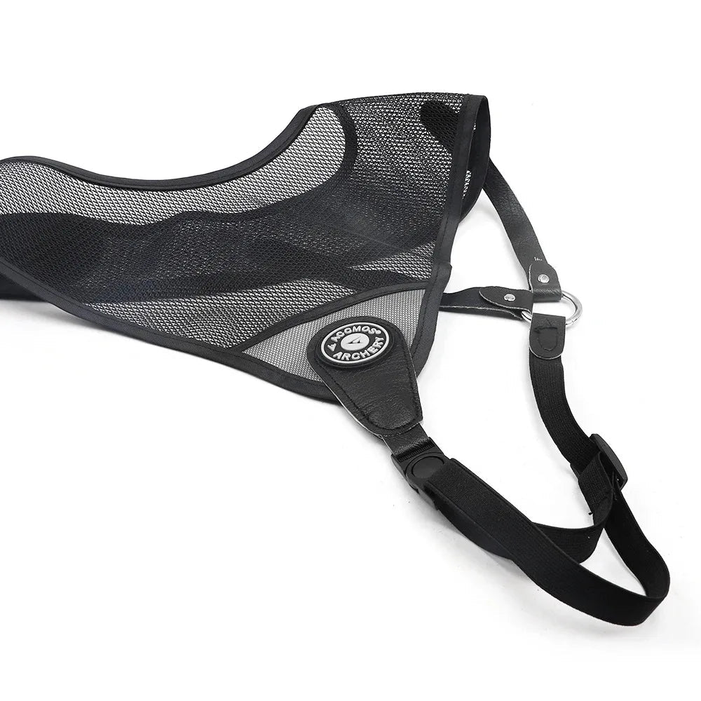 A lightweight and adjustable chest guard that improves safety and comfort for right-handed archers in training or hunting.