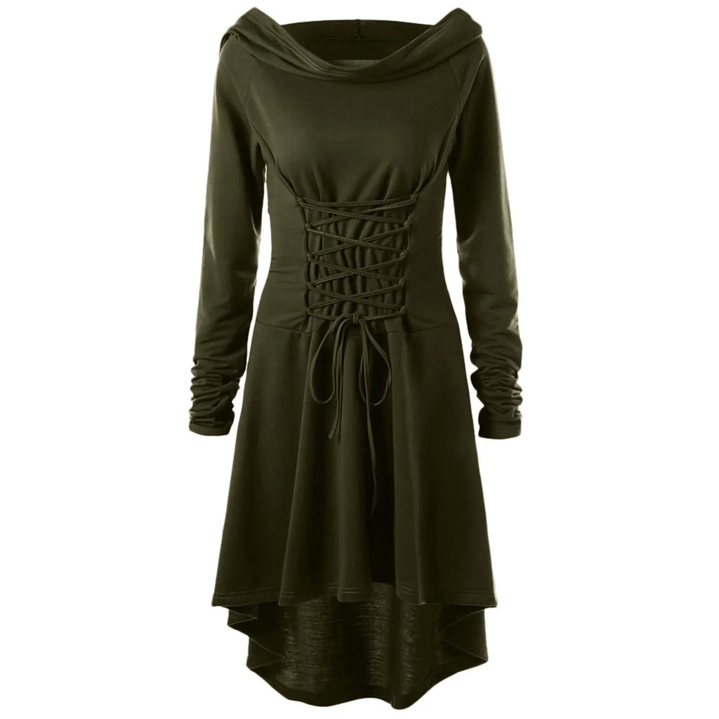 Step into your medieval fantasy with the Medieval Cosplay Archer Costume. This hooded robe is designed to bring out your inner archer, with a lace-up pullover style that offers both comfort and style. Made from soft polyester, this long hoodie dress features an elegant cloak, perfect for Renaissance fairs, Halloween parties, or any medieval-themed event.