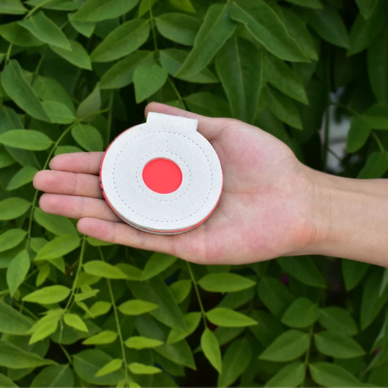 Enhance your shooting accuracy with this handmade bullseye target set, perfect for slingshot and general shooting training. Crafted from durable leather, each target in this seven-piece set features a hanging design for easy setup indoors or outdoors.